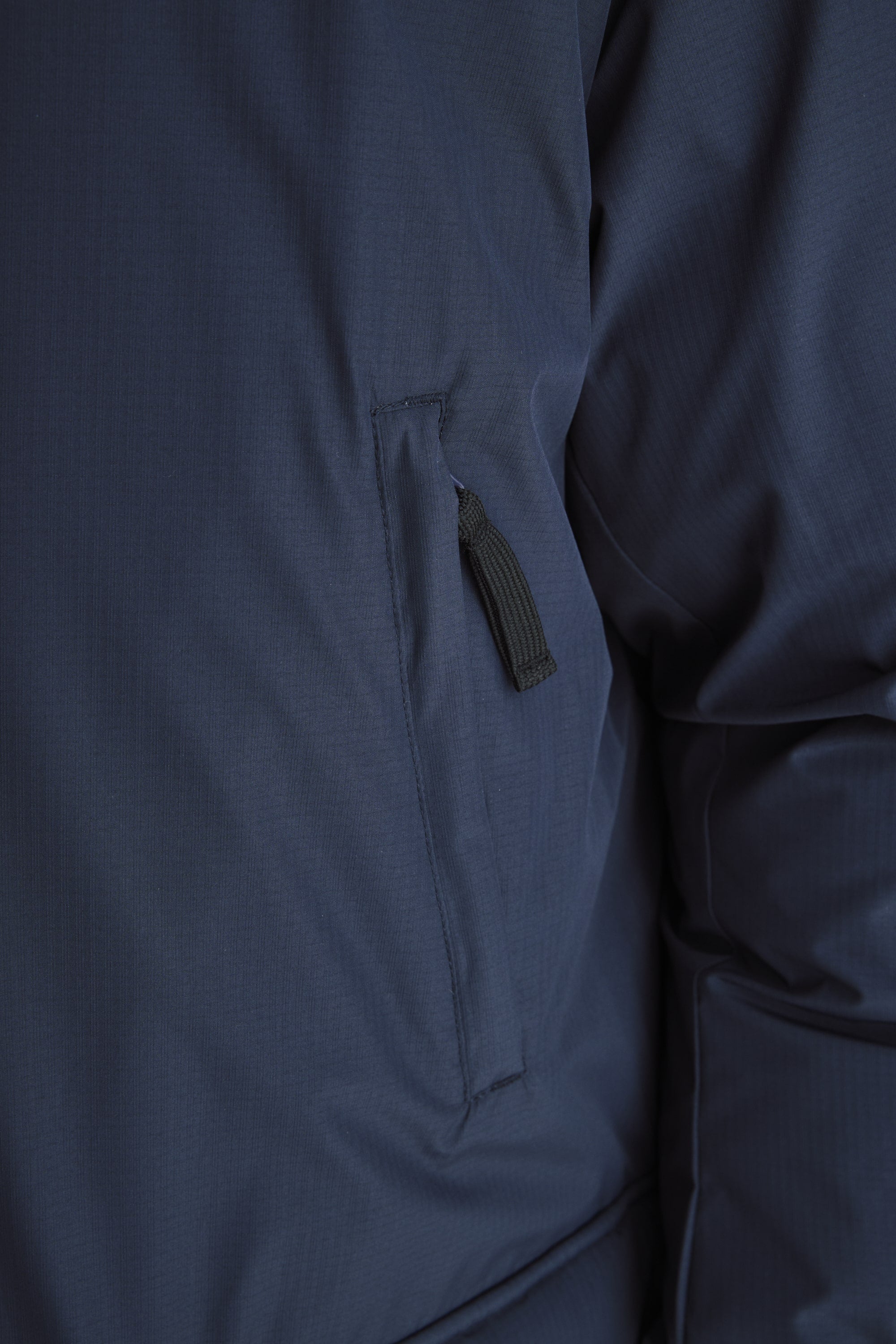 Sleeves feature an internal rib storm cuff to help reduce any draft coming up the sleeve. The hood of the jacket features an adjustable foul weather placket that can be folded back on itself when not in use. The interior of the jacket has two extra large velcro closure carry all pockets big enough to fit three bottles of wine in each pocket. Walking with that much wine in your jacket is not our problem.